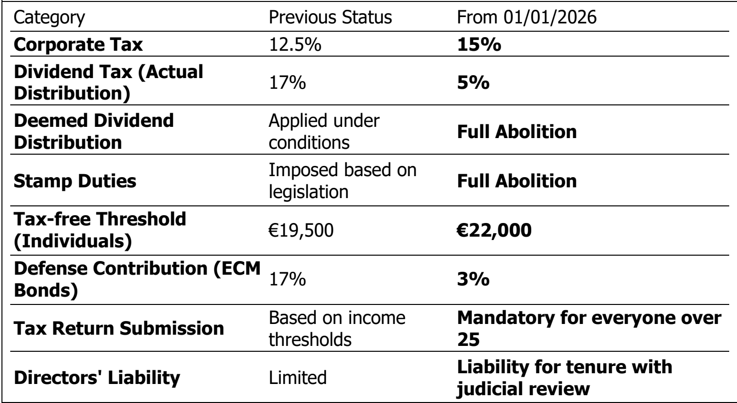 SUMMARY TABLE OF CHANGES FROM 01/01/2026
